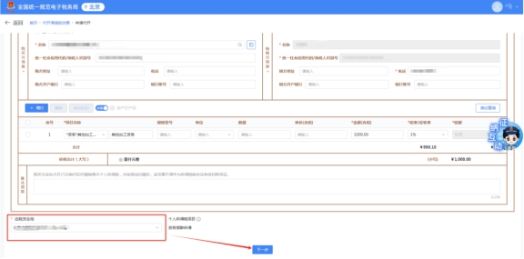 如需在發(fā)票票面?zhèn)渥⑵渌畔ⅲ稍凇皞渥⑿畔ⅰ币粰谔顚懶枰獋渥⒌膬?nèi)容,否則無需填寫。點擊“下一步”,進入納稅信息確認頁面。