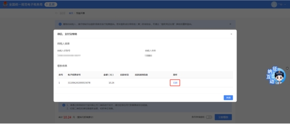 進入后,可以看見自己審核通過的發(fā)票,可以查看詳情及繳稅,點擊繳稅,進入繳稅流程。