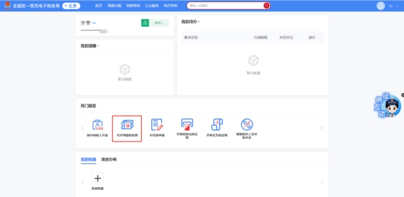 進入后,點擊熱門業(yè)務(wù)-代開增值稅發(fā)票。
