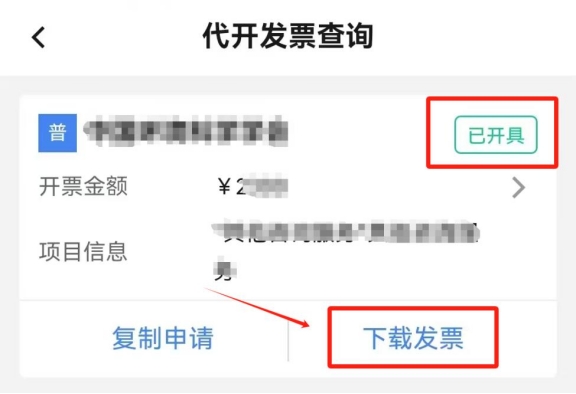 再次點擊首頁“代開增值稅發(fā)票”,點擊“代開發(fā)票信息查詢”,選擇提交申請的起止日期,點擊頁面下方的“查詢”。在查詢結(jié)果中找到本次提交的申請,該條申請右上角狀態(tài)為“待開具”,點擊“開具發(fā)票”,右上角狀態(tài)變?yōu)椤耙验_具”,點擊“下載發(fā)票”,即可查看并下載該發(fā)票(您可點擊發(fā)票預(yù)覽頁面右上角“...”將發(fā)票分享至對方)。
