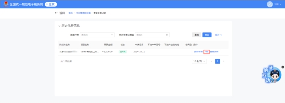 付款成功后,點擊開具,確認開具。