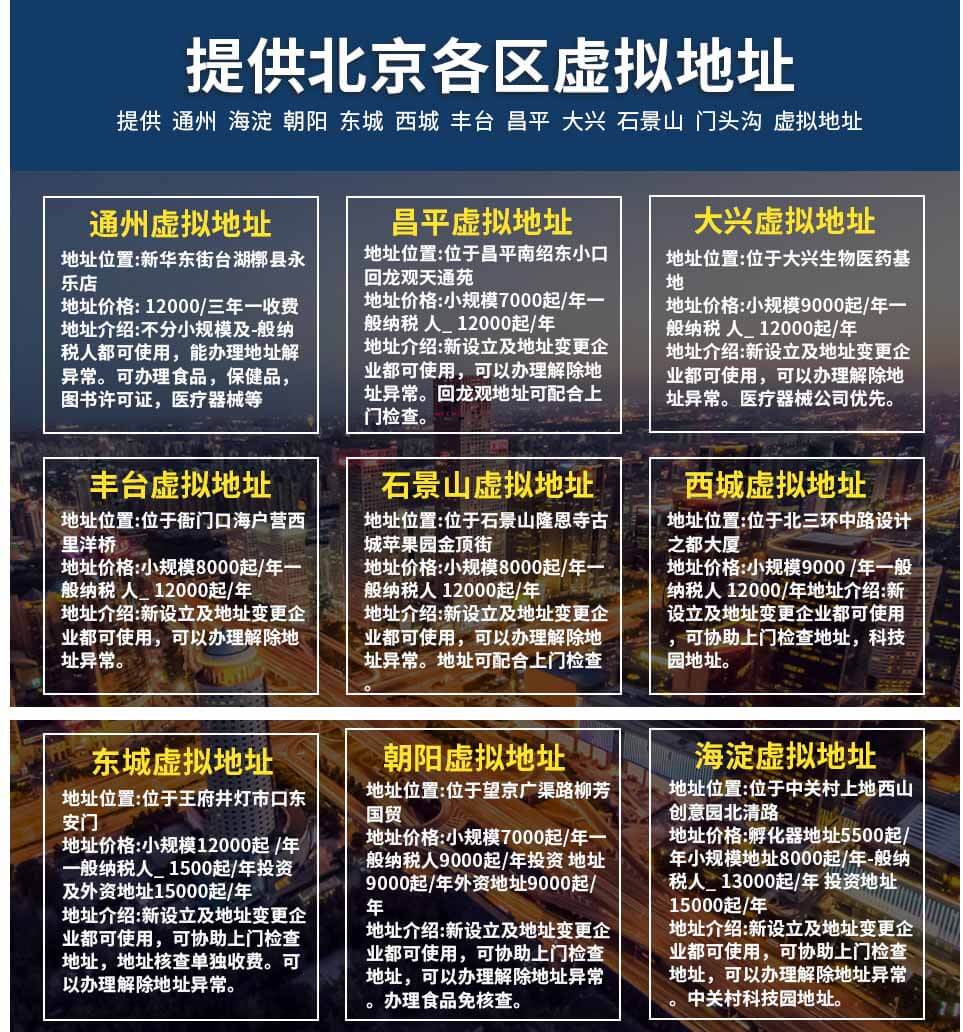 北京注冊地址類型產(chǎn)業(yè)園區(qū)地址,北京公司注冊虛擬地址,,這樣的地址一樣是大型產(chǎn)業(yè)園區(qū)里邊,北京住房公司注冊地址,的地址,也是真實(shí)存在的。通過備份,北京大興農(nóng)業(yè)科技公司注冊地址,的。這樣的地址是最可靠的,但是也是價(jià),北京龍威科技有限公司注冊地址,格最高的。一般物質(zhì)情形不會(huì)被拉入,在北京注冊分公司需要實(shí)體地址,異常,只要公司正常提出請求報(bào)告交納稅款交,北京公司注冊地址在哪,納稅款,就算地址顯露出來問題,園區(qū)也,北京淵大教育科技有限公司注冊地址,會(huì)不收費(fèi)處置。..