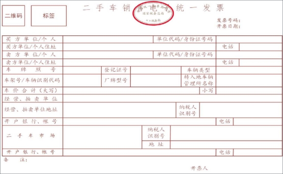 二手車銷售發(fā)票